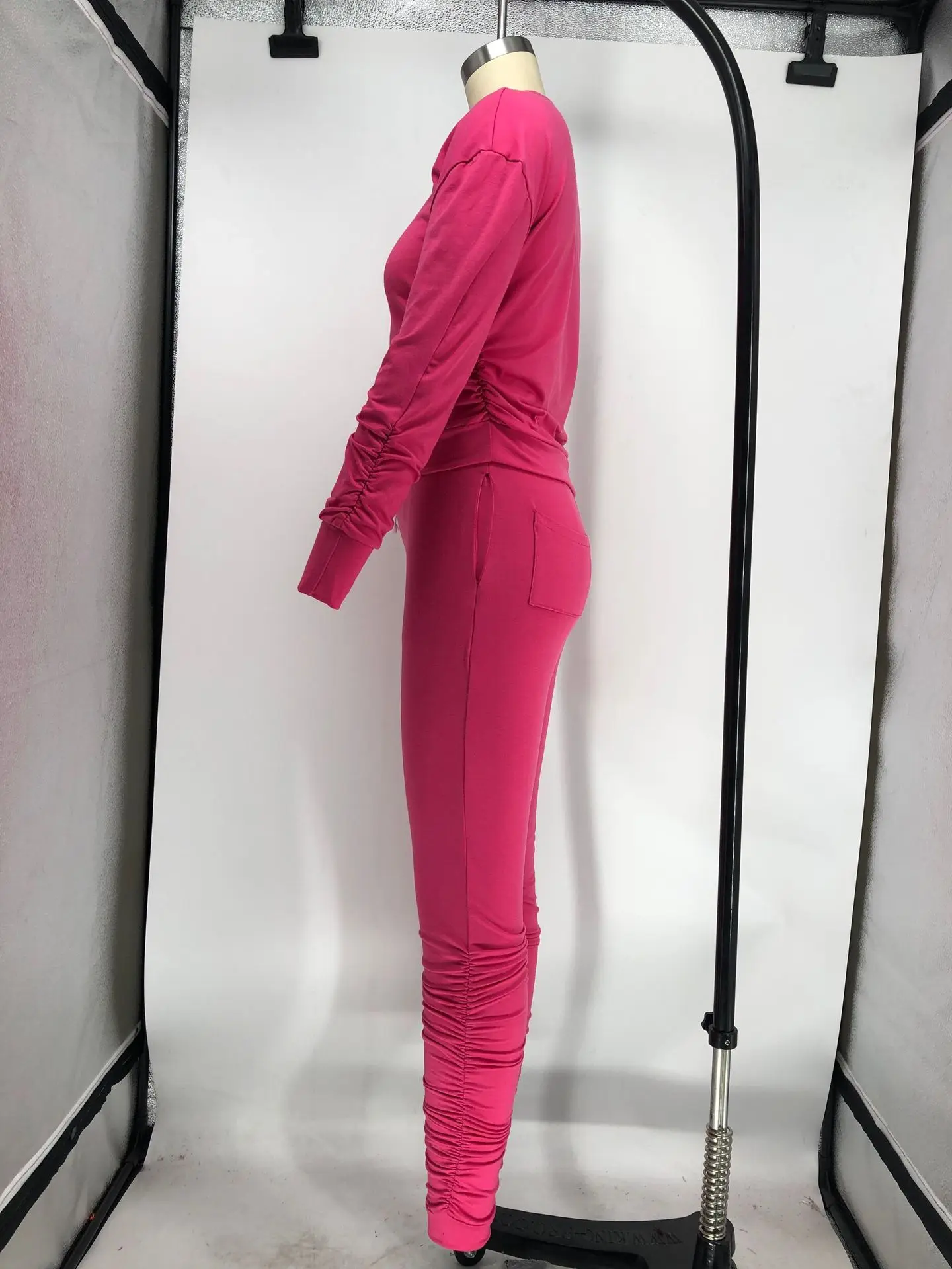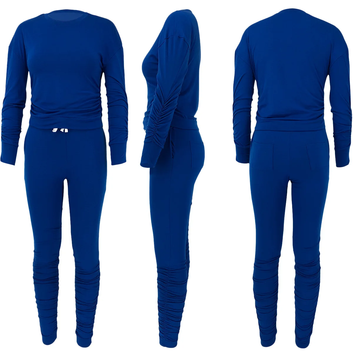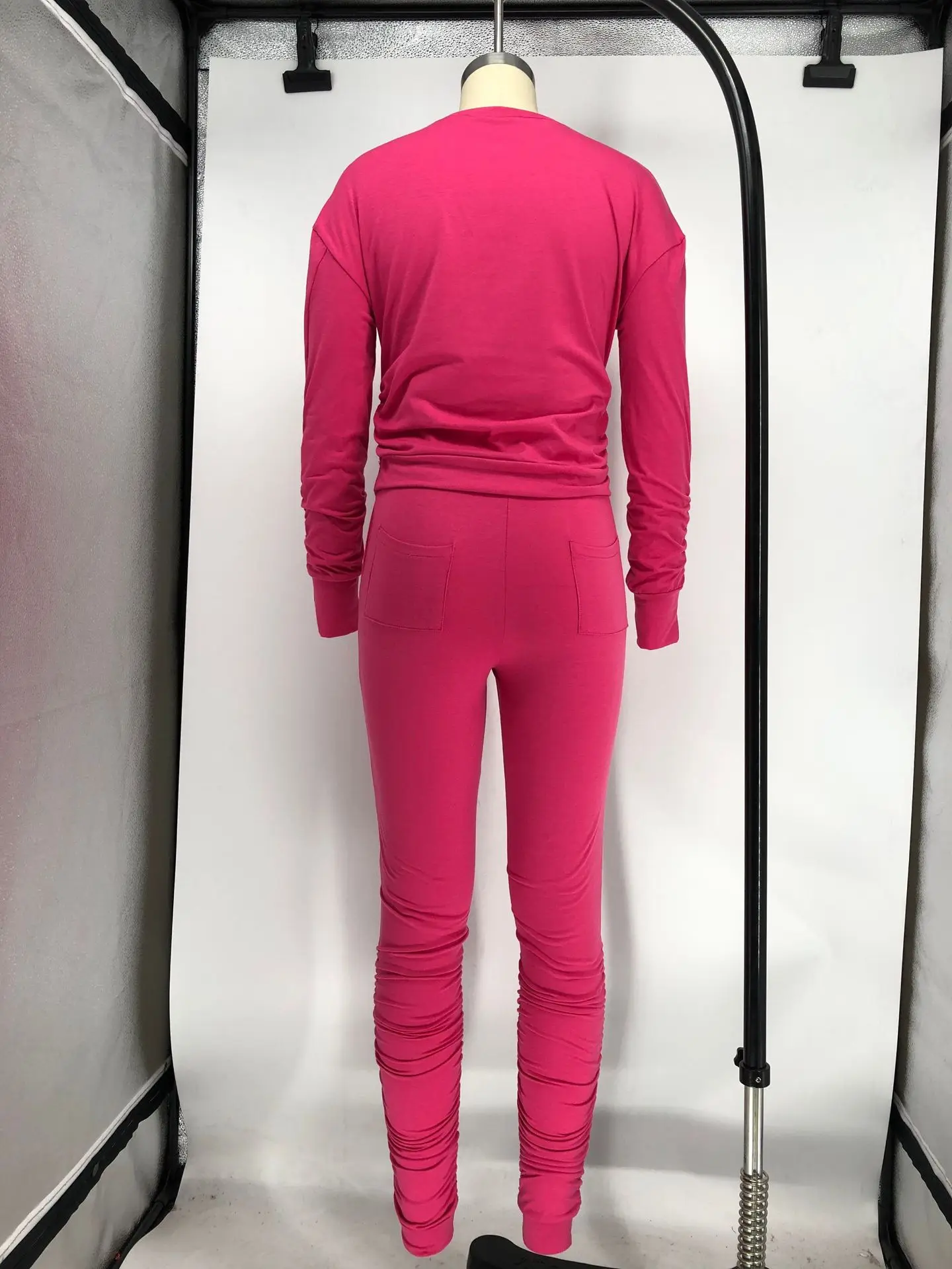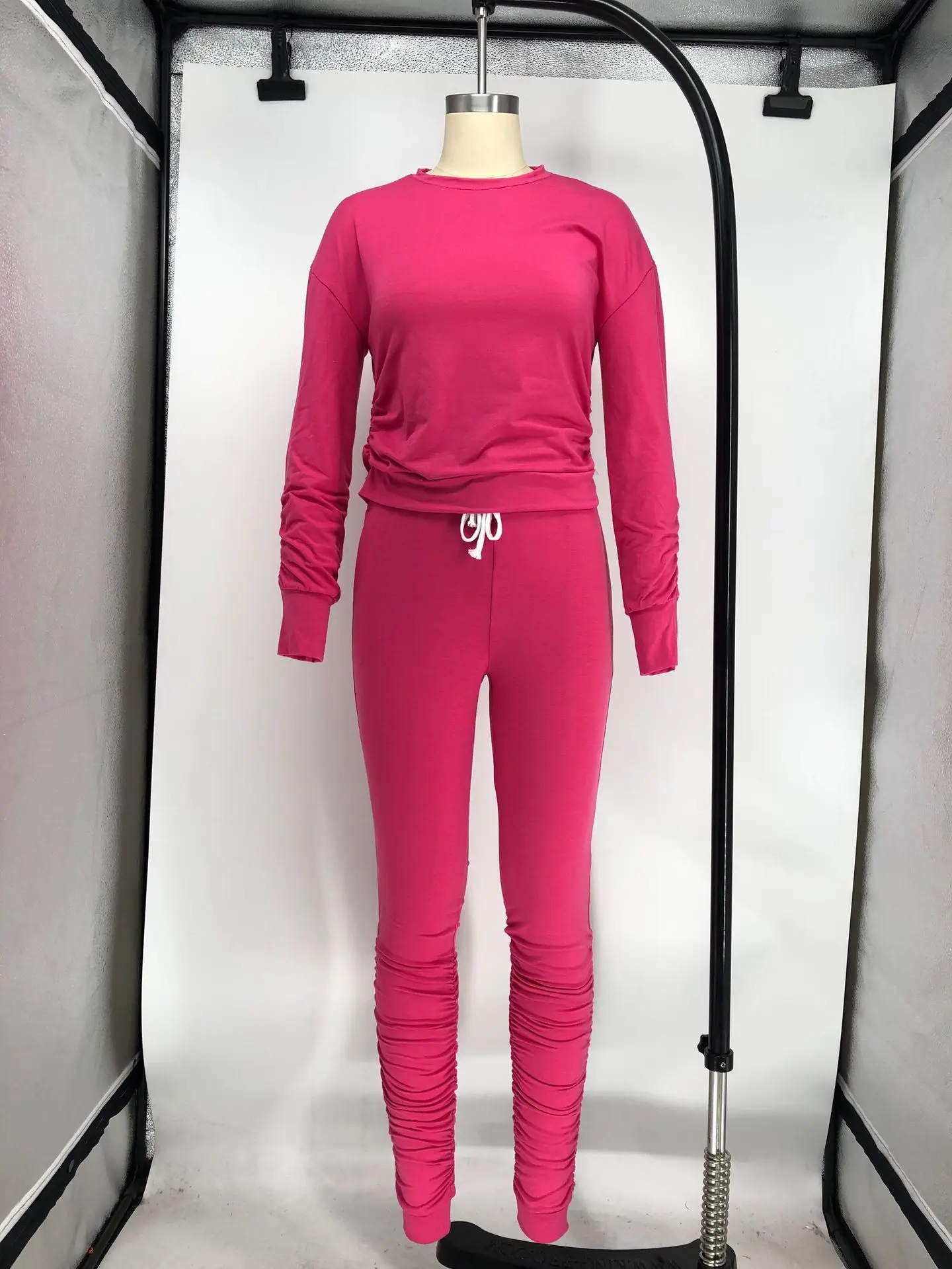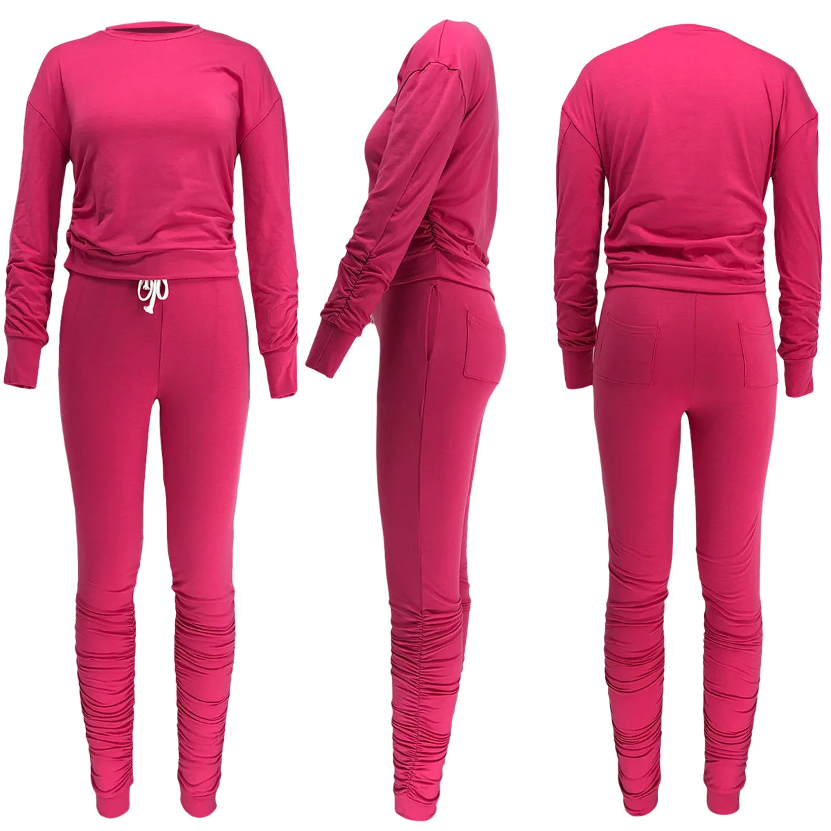 2020 Autumn Women's Sports Tight Sweater Outfit 2 Piece Set  Stacked Pants Two Piece Set
