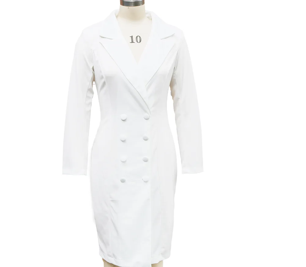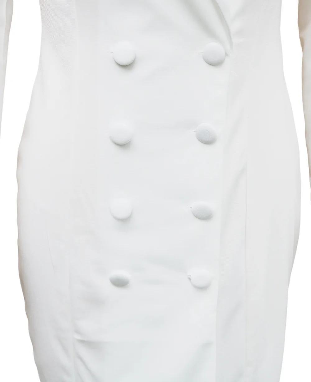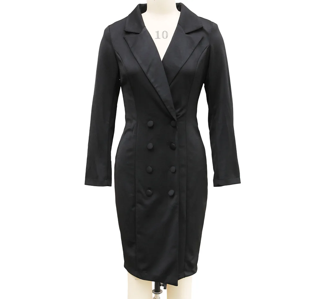 The double-button closure adds a classic touch to this professional yet stylish dress.