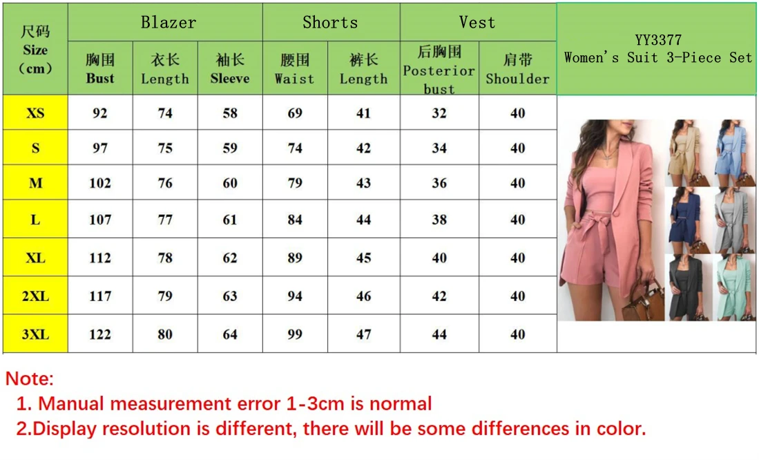 Shorts+Vest+Blazer 3 Piece Suits Set For Women