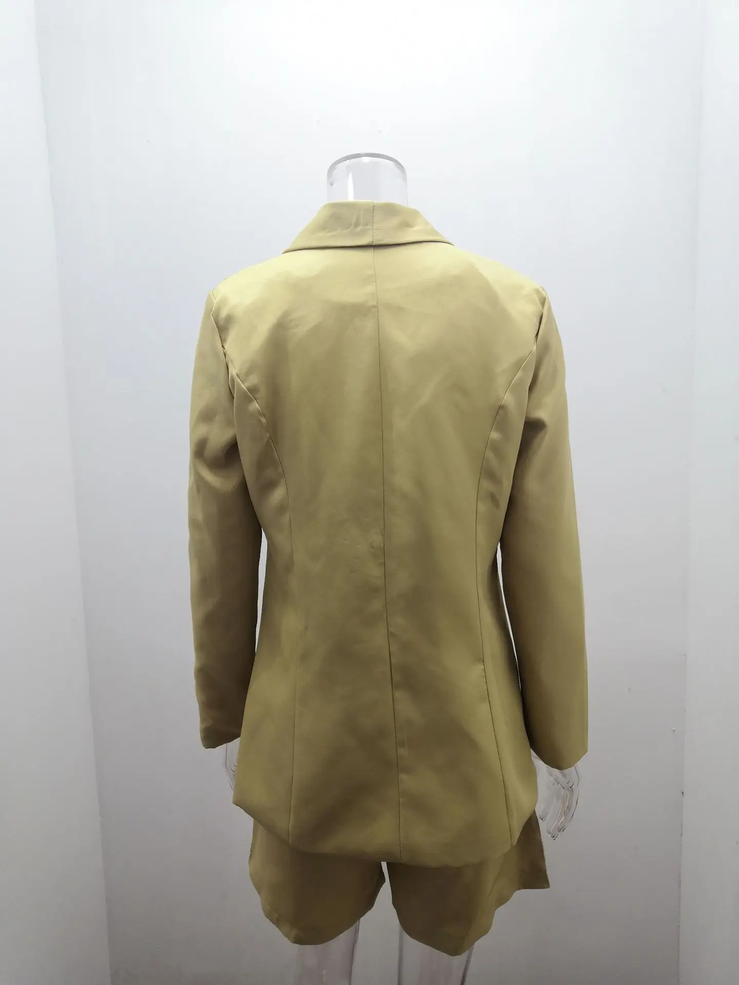 Fashion Shorts+Vest+Blazer 3 Piece Suits Set For Women V-Neck Long Sleeve Ladies Suits Office Wear Blazer Set For Women