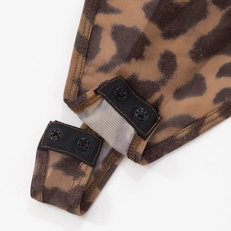 Ready Made Leopard Printed Long Sleeve Sexy Mesh Top Skinny Two Piece Leggings Women Sets